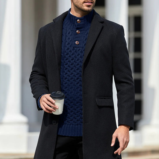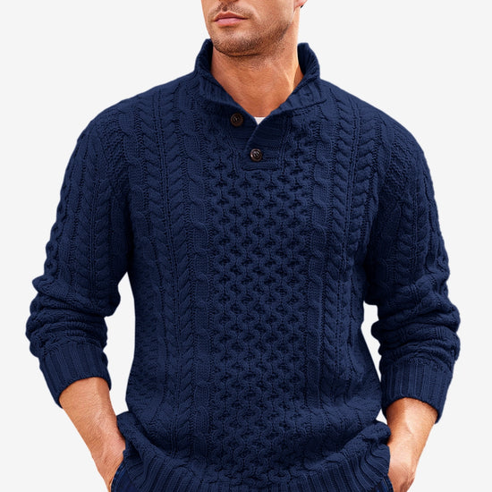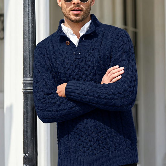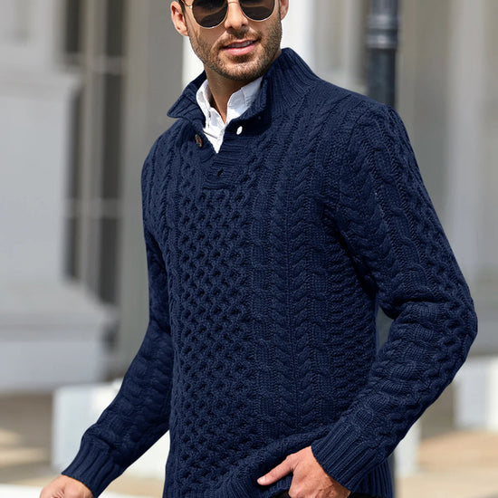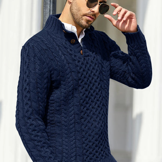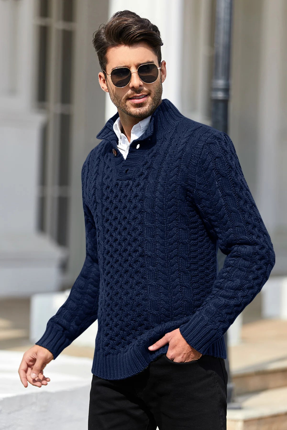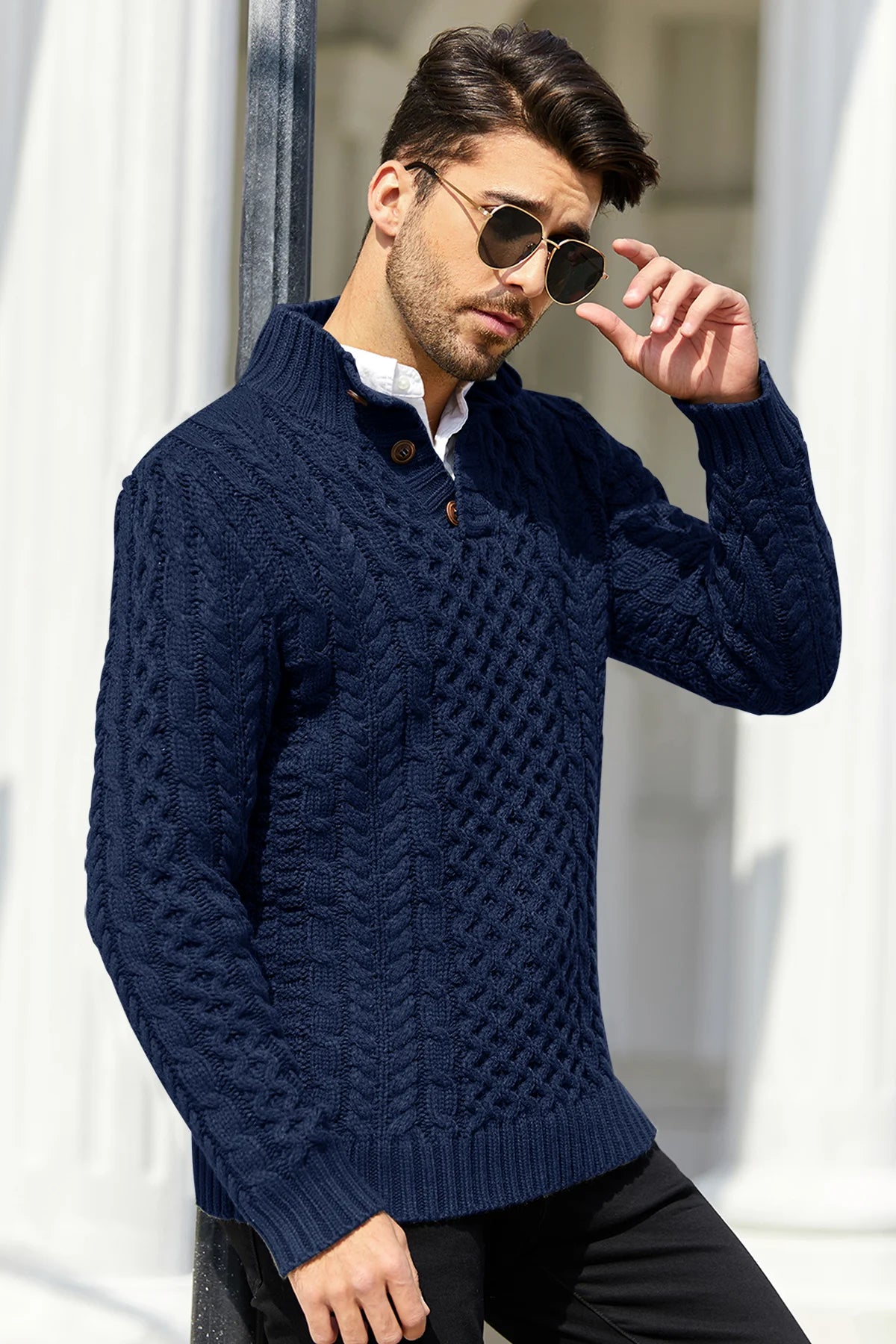 Runcati Dark Blue Stand Collar Pullover Sweater are designed for exceptional softness and all-day comfort. Crafted from a high-quality, lightweight cotton blend fabric, It's the perfect blend of cozy warmth and easy wearability.